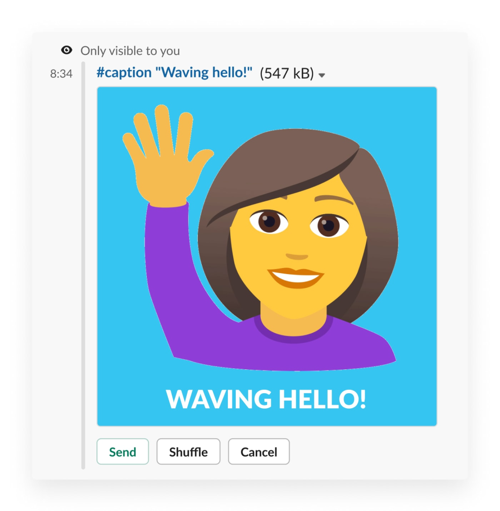 If you want to caption the gif with text of your own, add the hashtag #caption before your search term to have it appear on the gif itself. This way you can personalize your gifs and surprise your colleagues.
