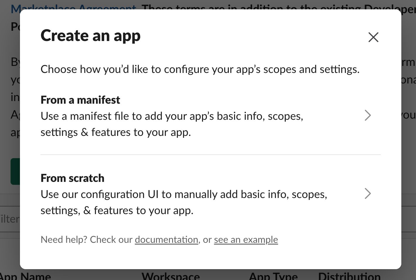 - Log in to your Slack workspace or join the Developer Program to get a free enterprise sandbox.