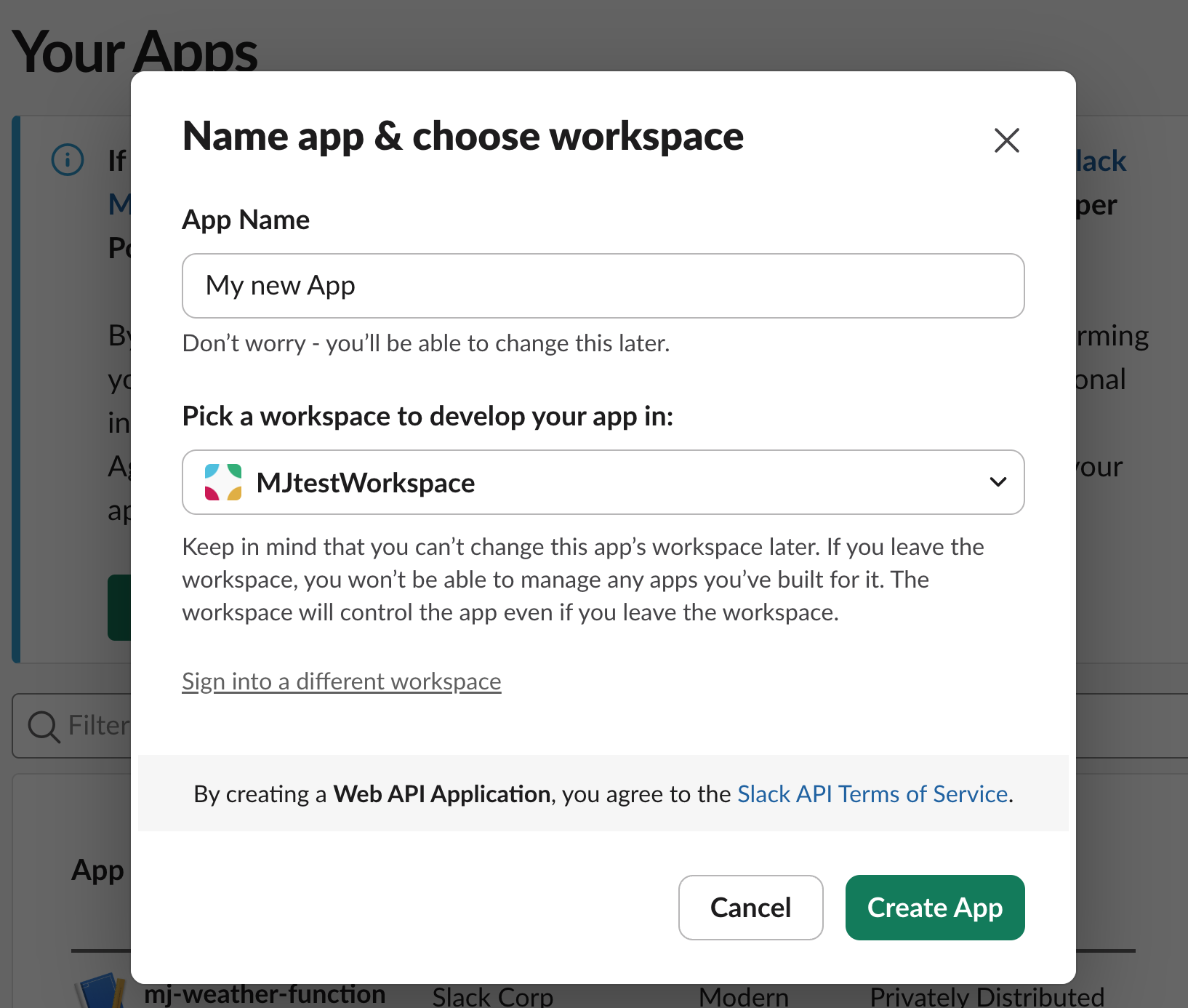- Create a Slack app.