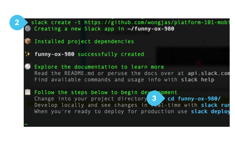 Open your terminal and navigate to a directory where you have permission to create files. Use the following command to scaffold a new Slack project: