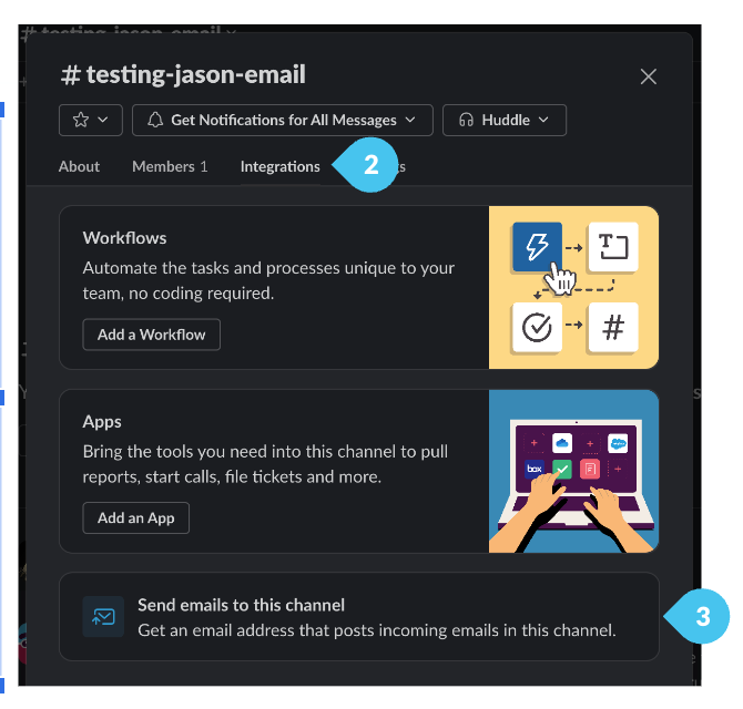 Slack allows you to forward emails into channels, and we’ll use this to simulate customer inquiries.