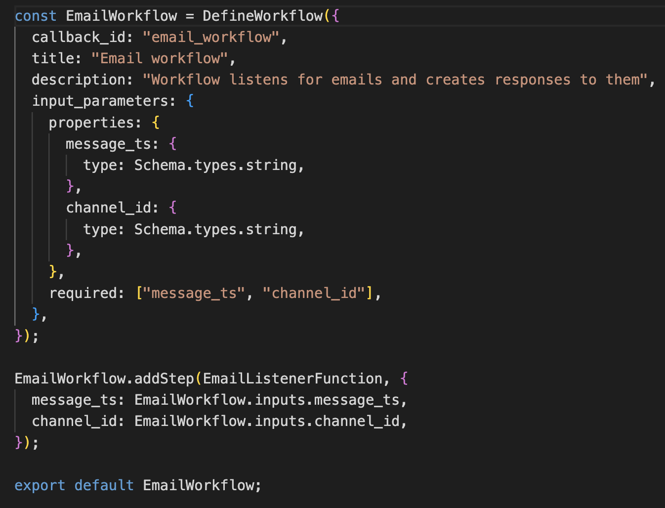 Once our trigger is tripped, it’ll set off a particular workflow into motion. Let’s take a look at that in the email_workflow.ts.