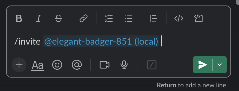 Next, invite your app to your channel. Your app cannot read events from a channel unless it’s actually in the channel, so let’s invite your bot to the testing channel. After that, test your setup by sending an email to the channel email address you created earlier (refer to step 3).